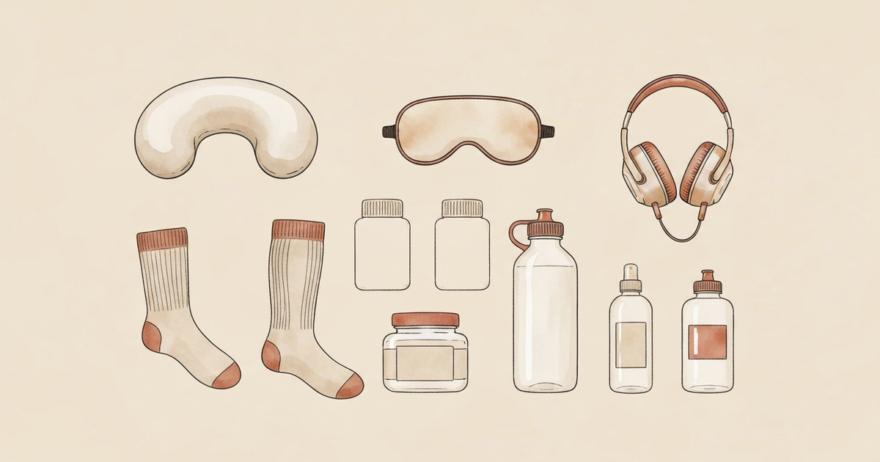 10æéè¶ ã®é·æéãã©ã€ããå¿«é©ã«ä¹ãåãã«ã¯ãæ°Žåè£çµŠïŒ1æé200mlïŒã»éåïŒ1æéããšïŒã»ç¡ç ç°å¢äœãã®3æ¬æ±ãåºæ¬ãå¿ æºã°ããº15éžãæããå§è¿«ã¹ãããã³ã°ã»ããã¯ãããŒã»ã¢ã€ãã¹ã¯ã§æ©å çæŽ»ãå¿«é©ã«ãæå·®èª¿æŽã¯æ©å ããéå§ããŸãããã